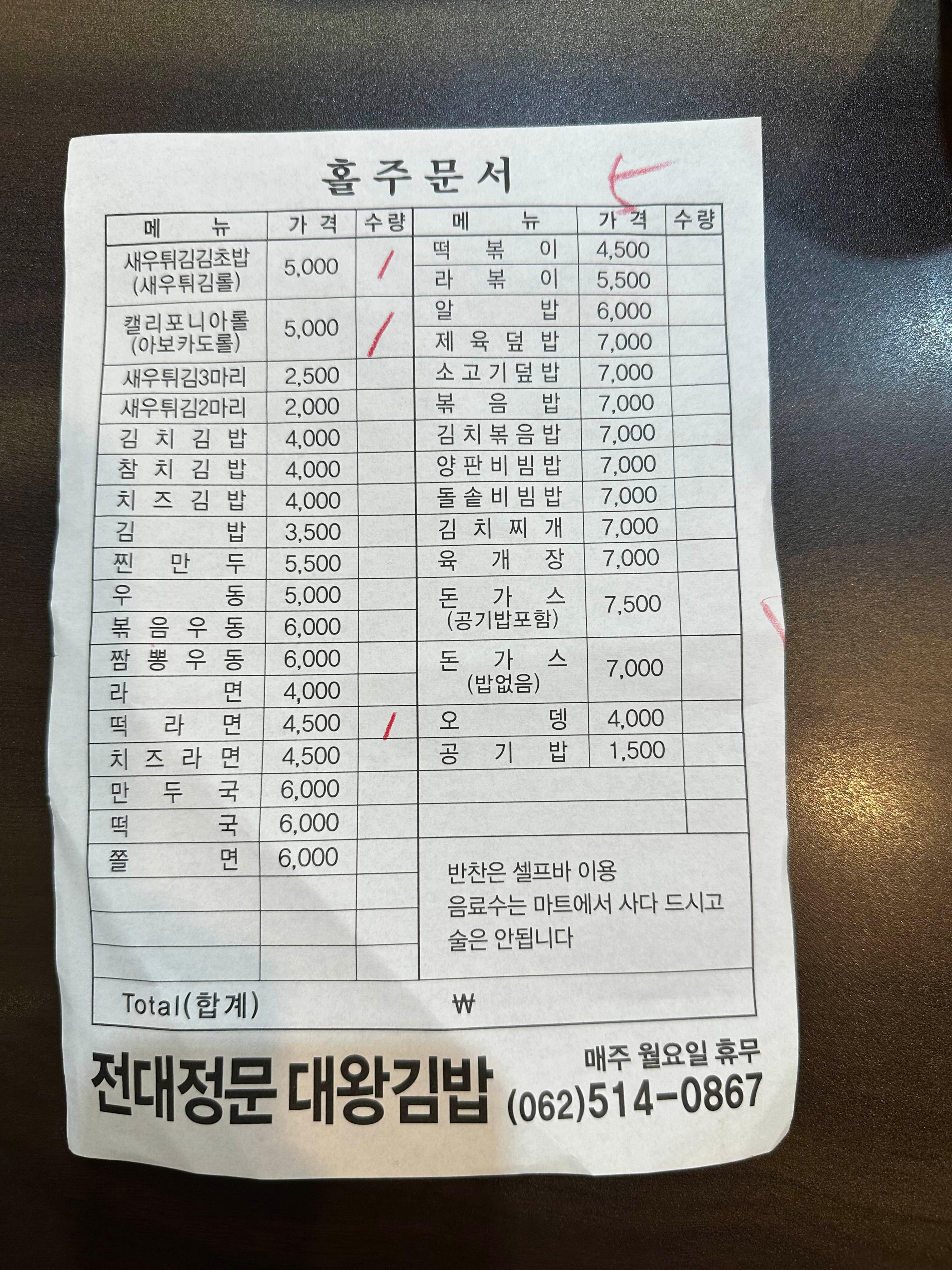 주문 방식은 여전히 빨간 색연필로 체크 ✍️