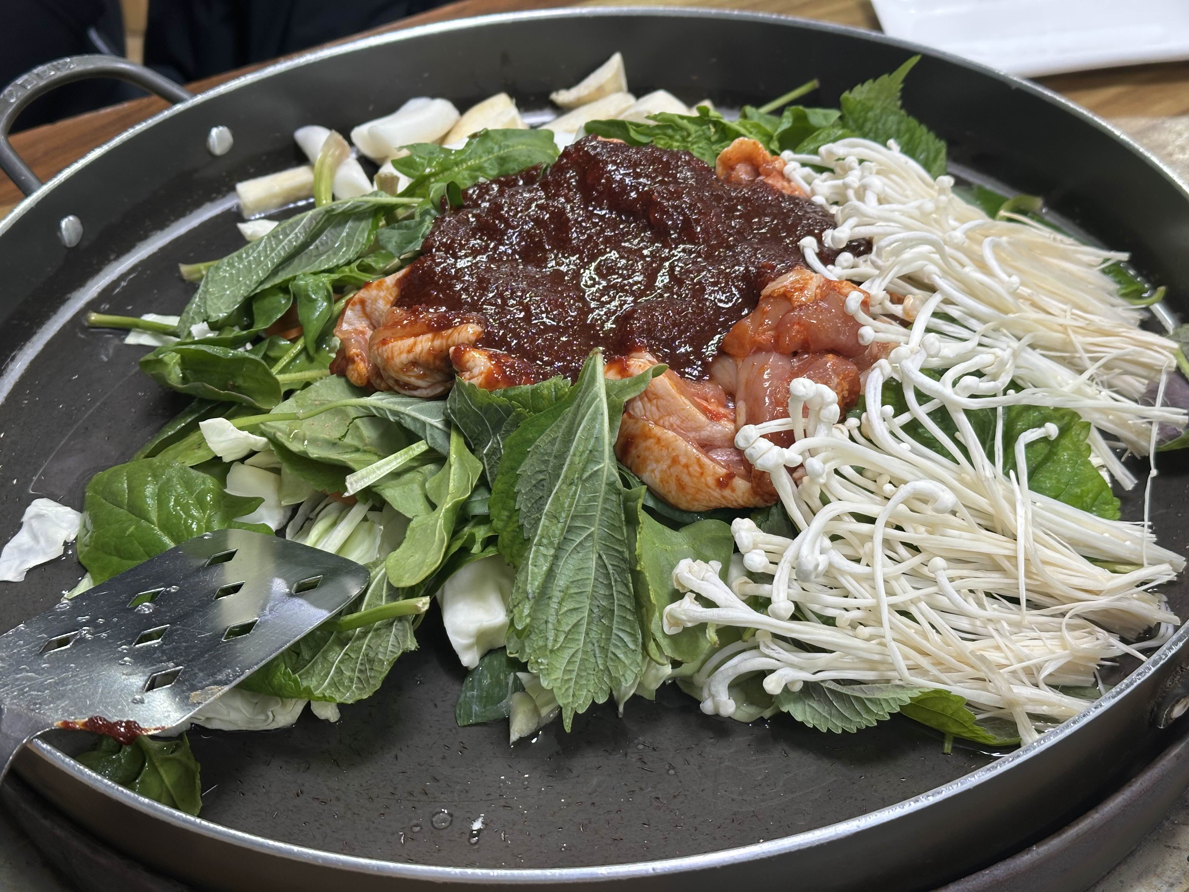 이미 닭갈비 냄새가 슬슬 올라오고 있었어요.