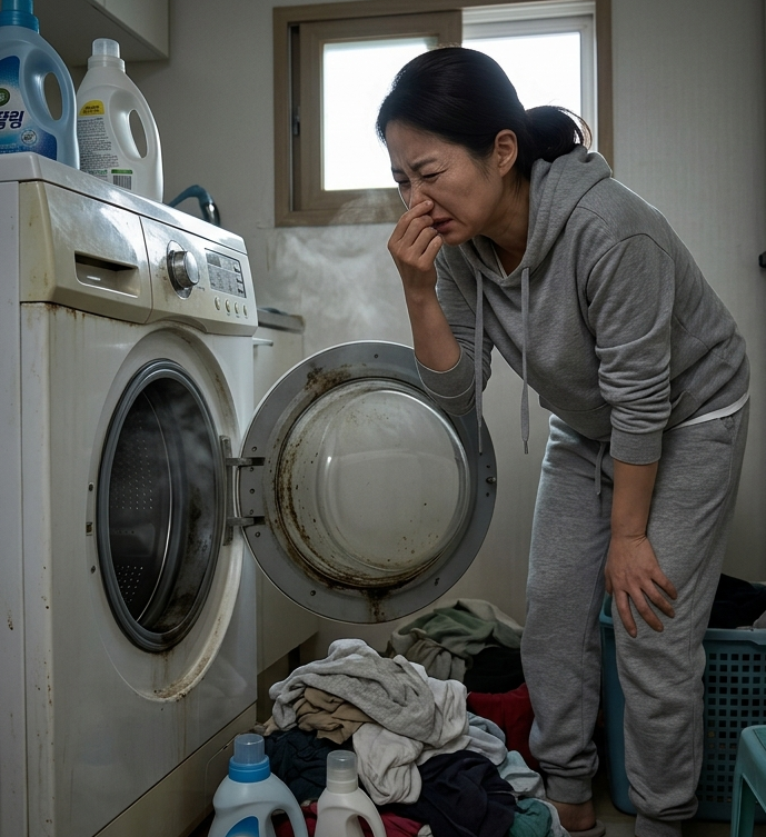 세탁기에서 냄새가 나는 가장 큰 이유는 세제 찌꺼기와 습기 때문입니다.