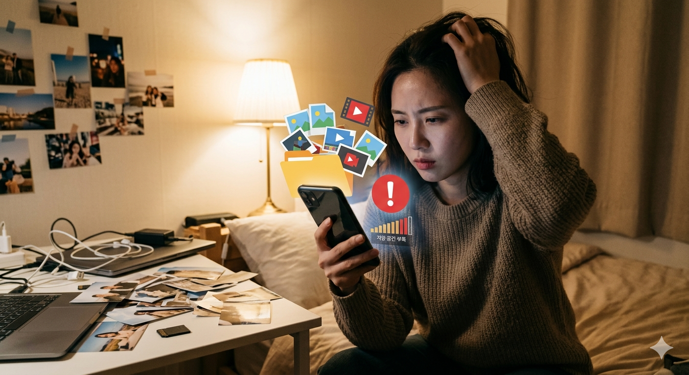 사진, 영상, 앱 데이터가 쌓이면서 저장공간이 부족해집니다.