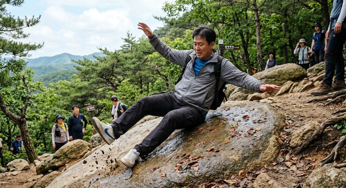 일반 운동화로 등산할 경우 미끄러질 위험이 있습니다.