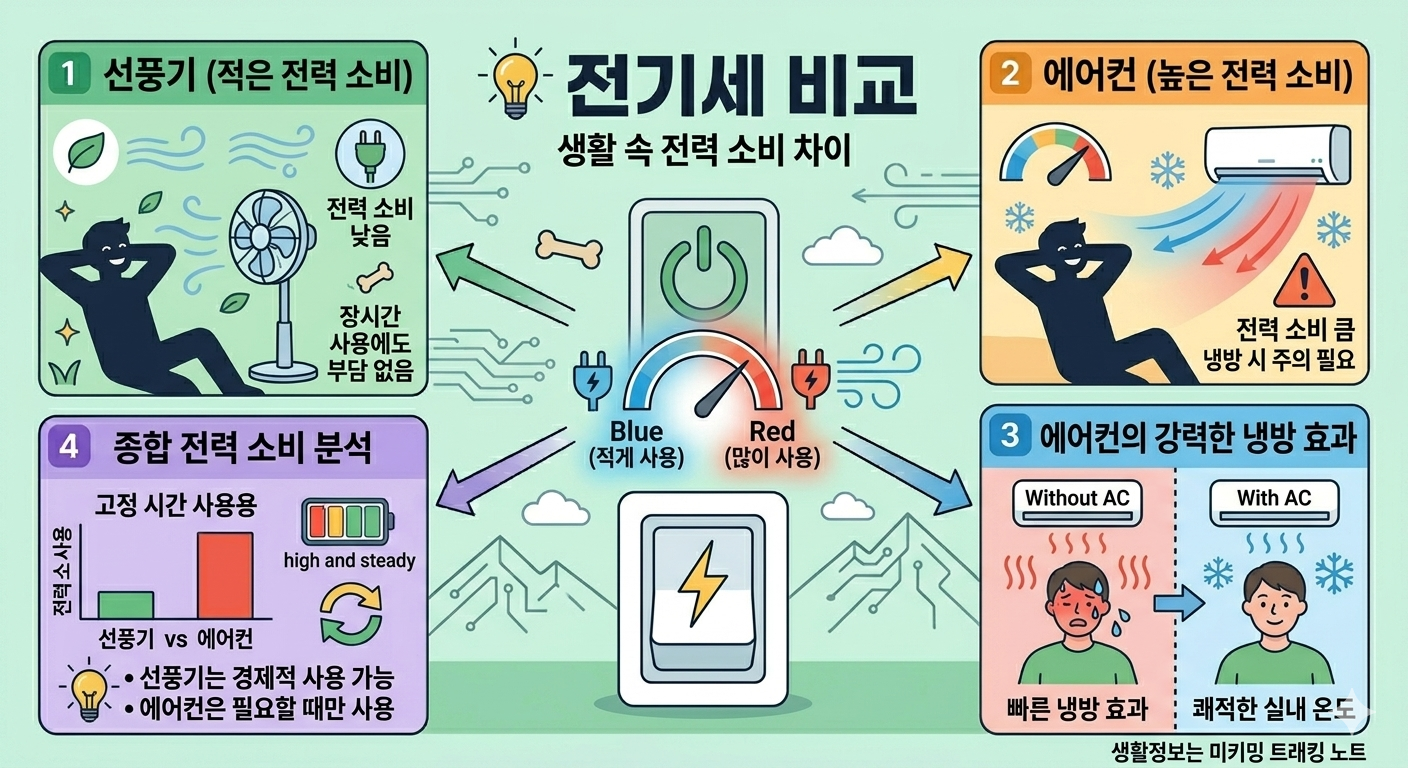 오늘은 선풍기와 에어컨의 전기세 차이를 비교해보겠습니다.