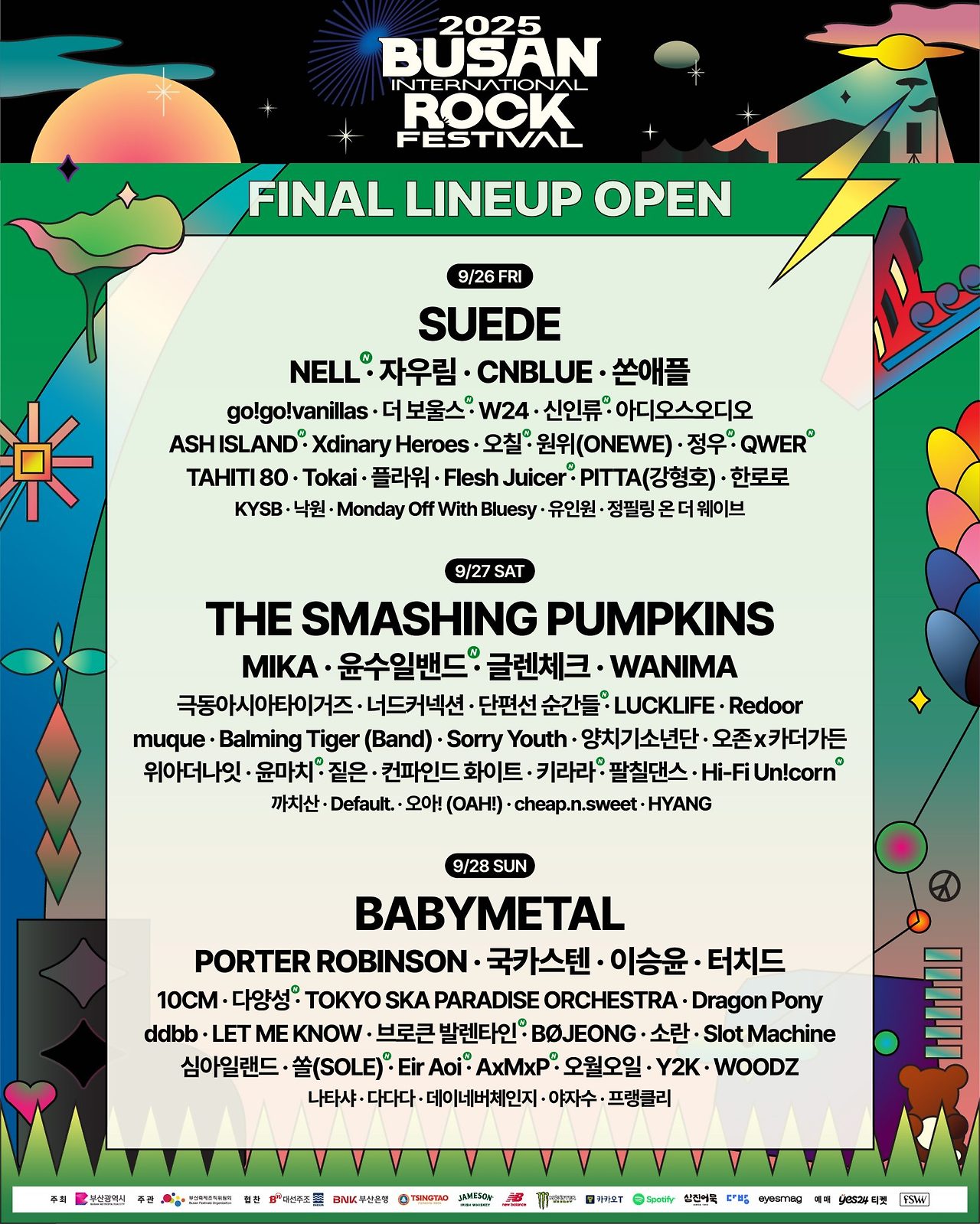 - Day 1 (9/26 금): SUEDE, 자우림, 넬, CNBLUE, QWER, Ash Island, 태히티 80 등