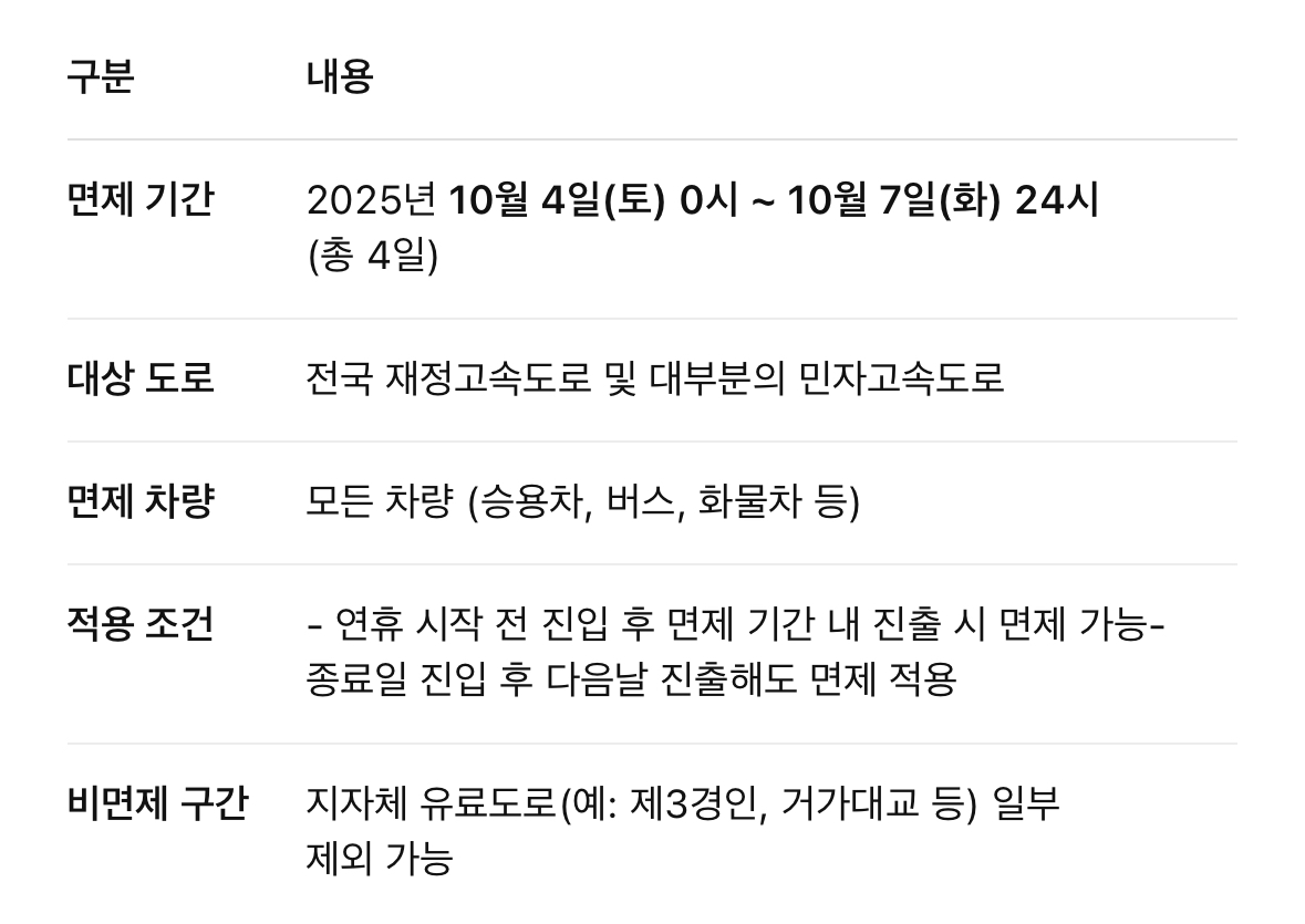 ✅ 면제기간: 2025년 10월 4일(토) 0시 ~ 7일(화) 24시