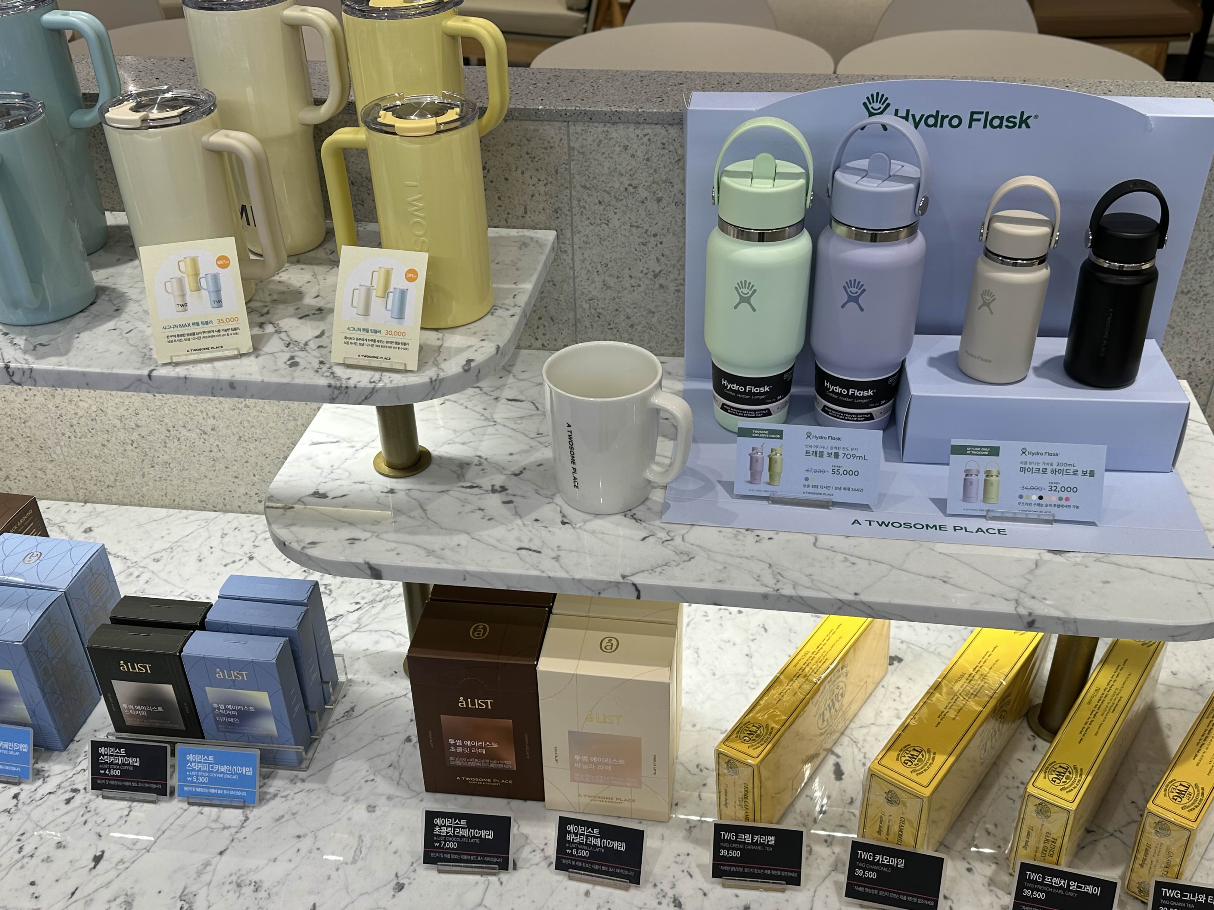 매장 한쪽에는 하이드로플라스크, 투썸 머그,