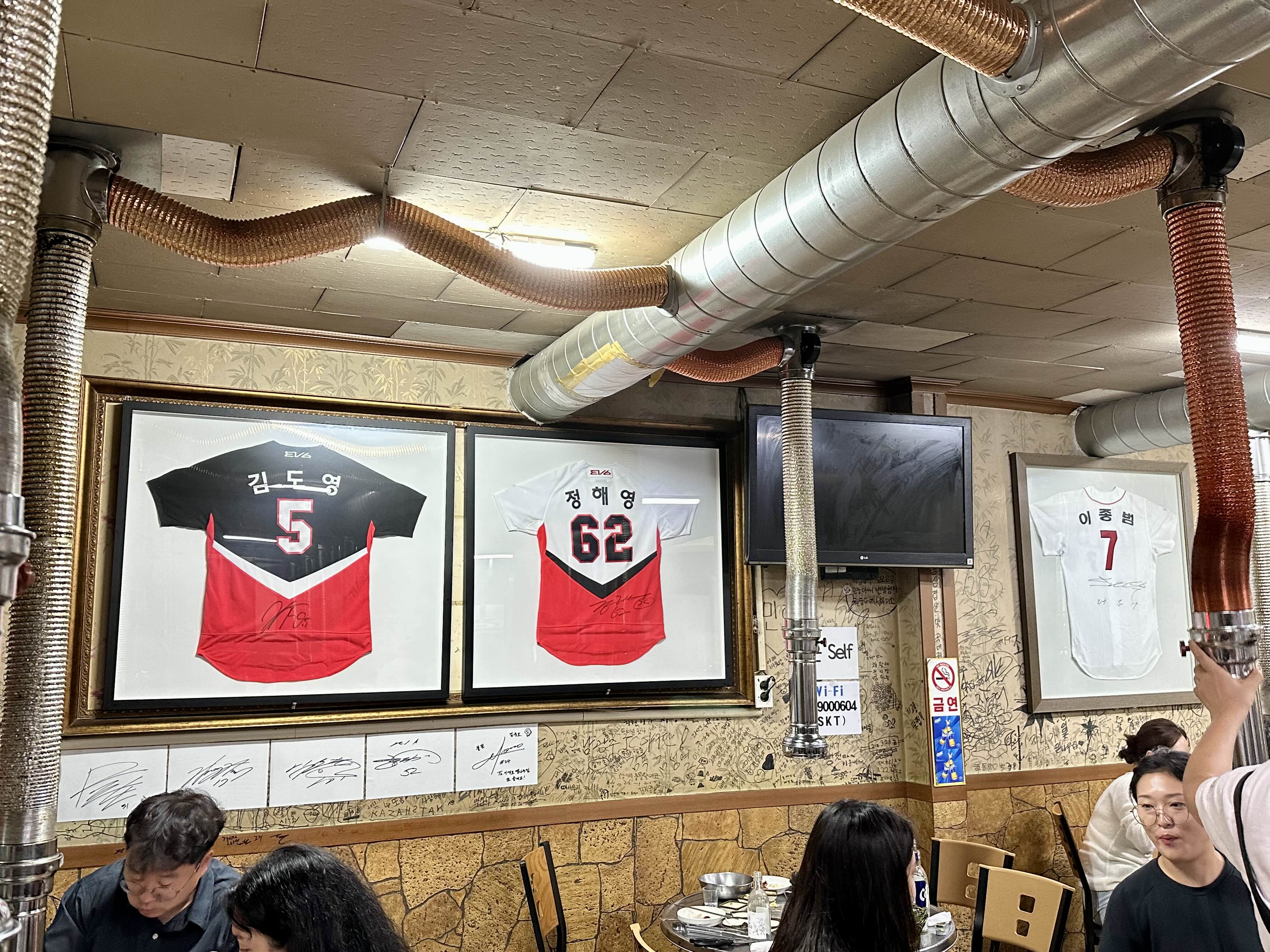 벽에는 기아타이거즈 선수들 유니폼과