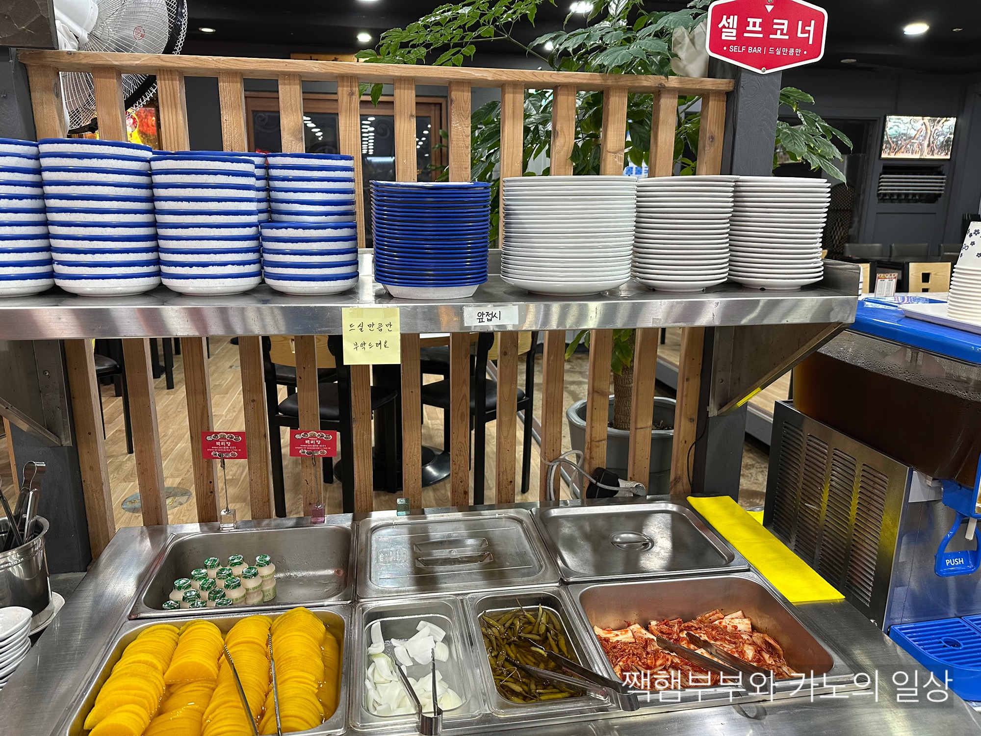 셀프코너에서는 단무지, 김치, 음료를 자유롭게 이용할 수 있어요.
