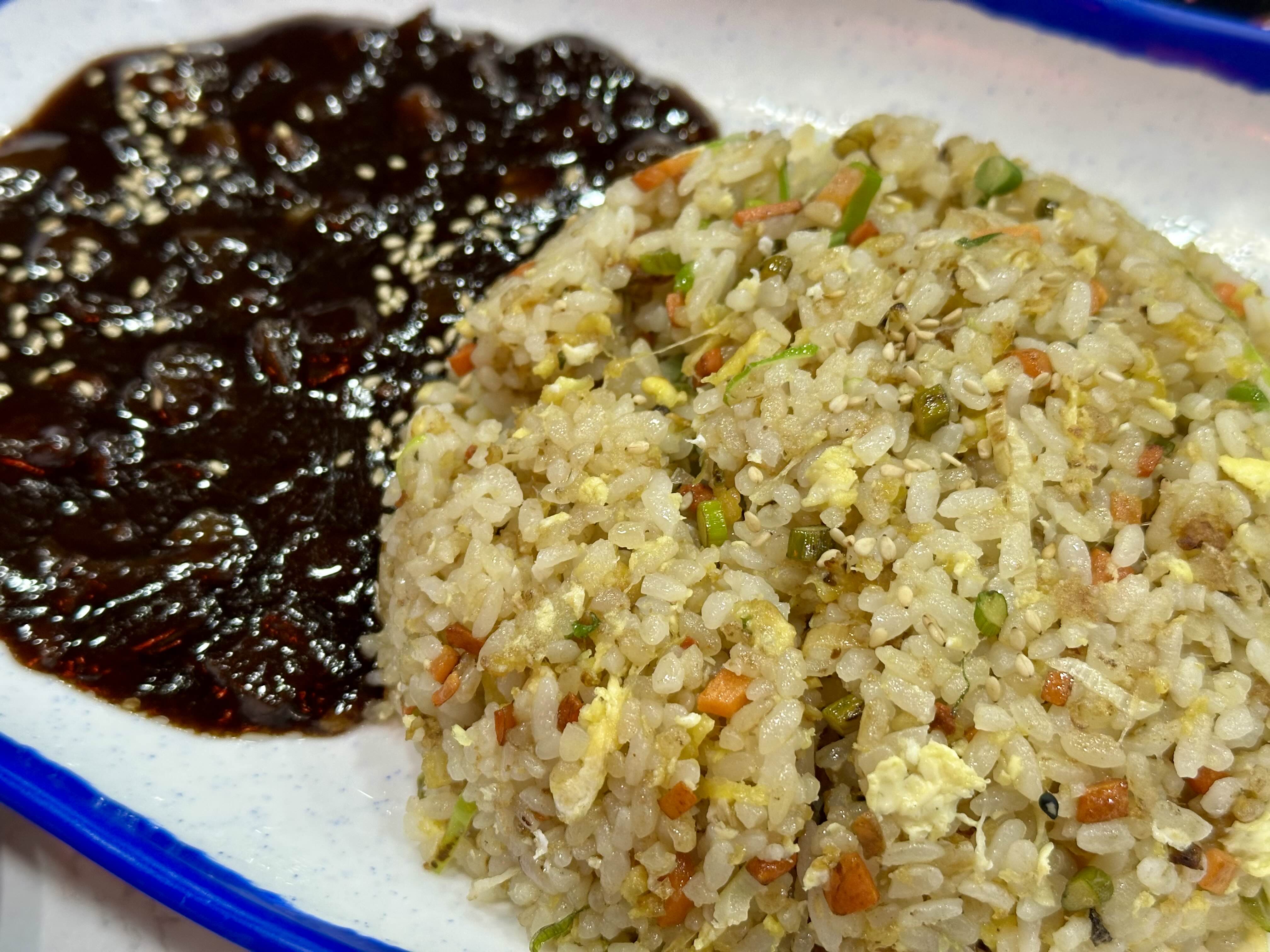 밥알이 고슬고슬하게 볶여서 짜장 소스와의 조화가 완벽해요.