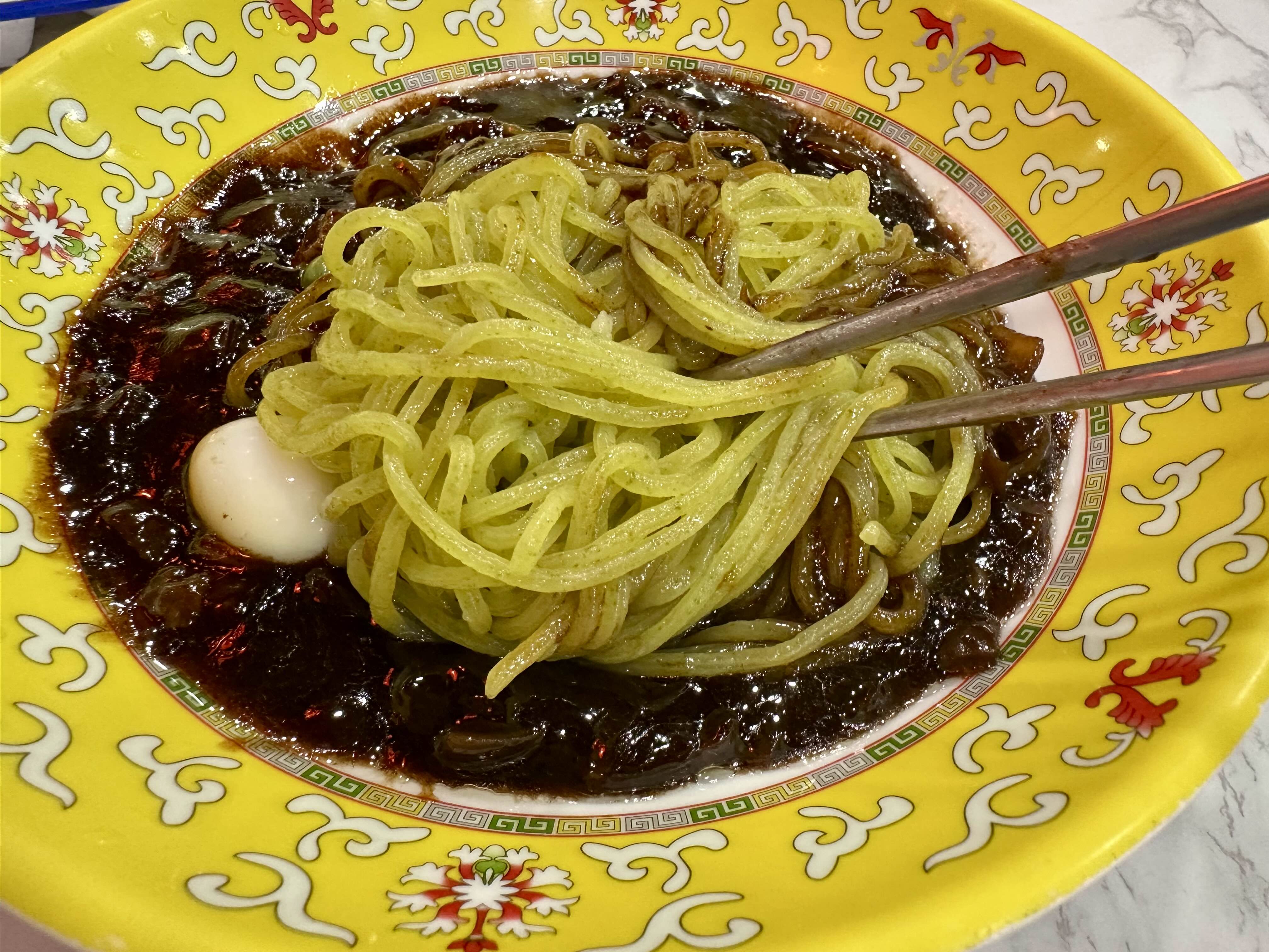 면은 탱글탱글한 녹차 생면 스타일이라 일반 짜장면보다 더 쫄깃한 식감이에요.