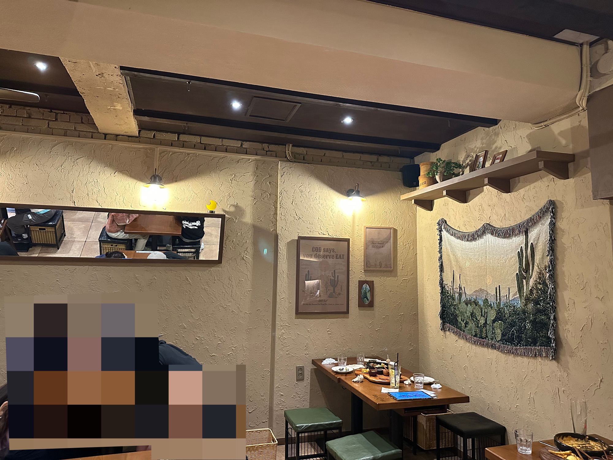 벽면 질감, 선인장 장식, 우드 인테리어로 꾸며진 공간.
