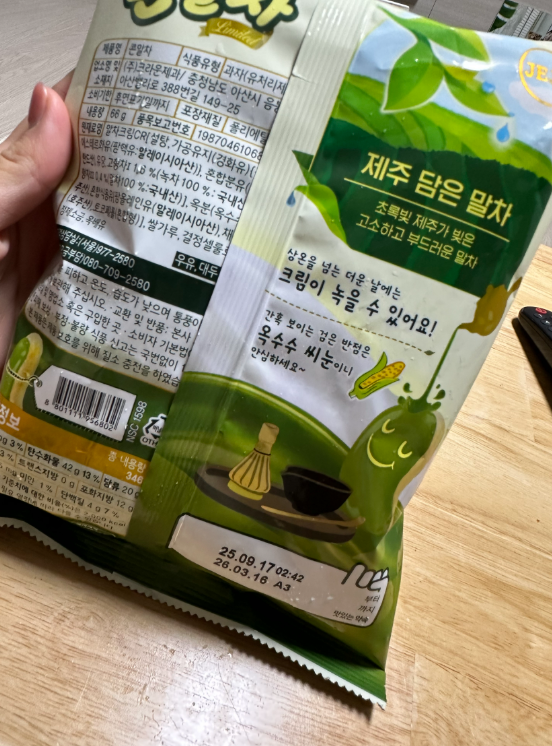 씹을수록 고소한 옥수수 향에 달콤한 말차맛이 은근하게 남아요.